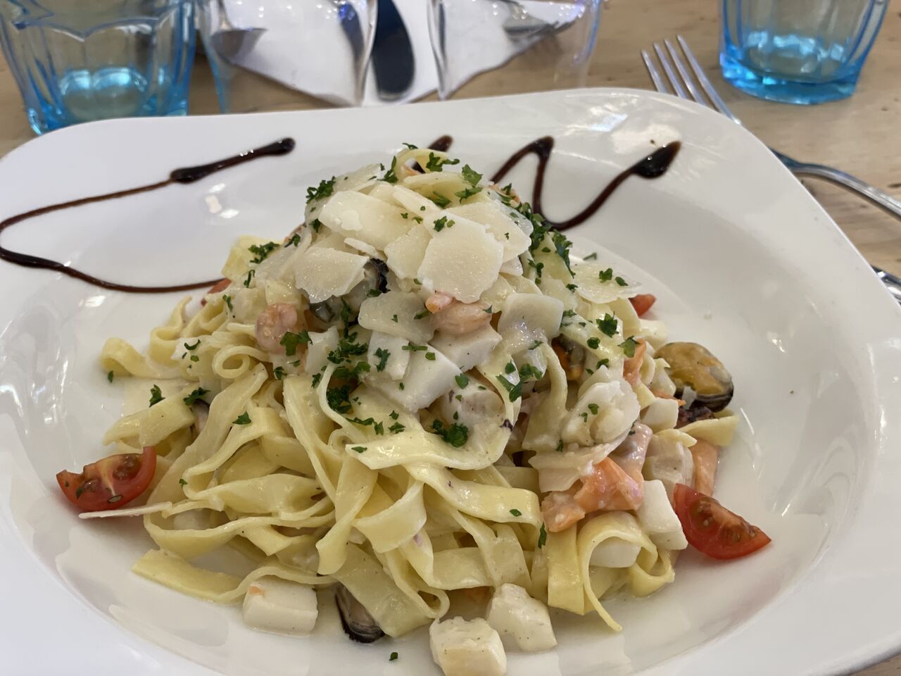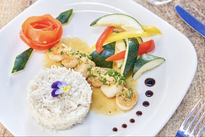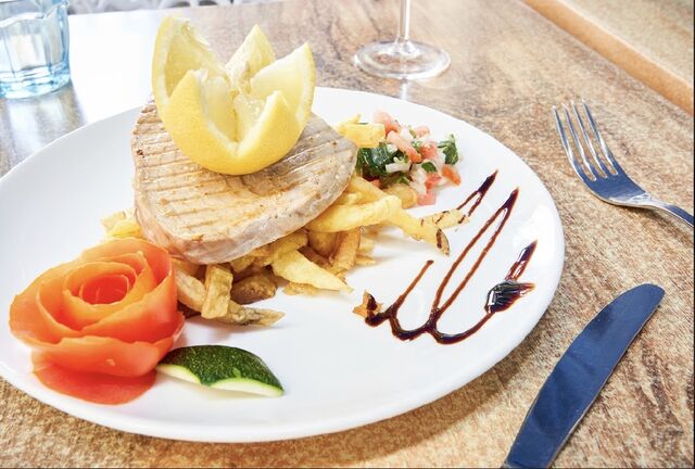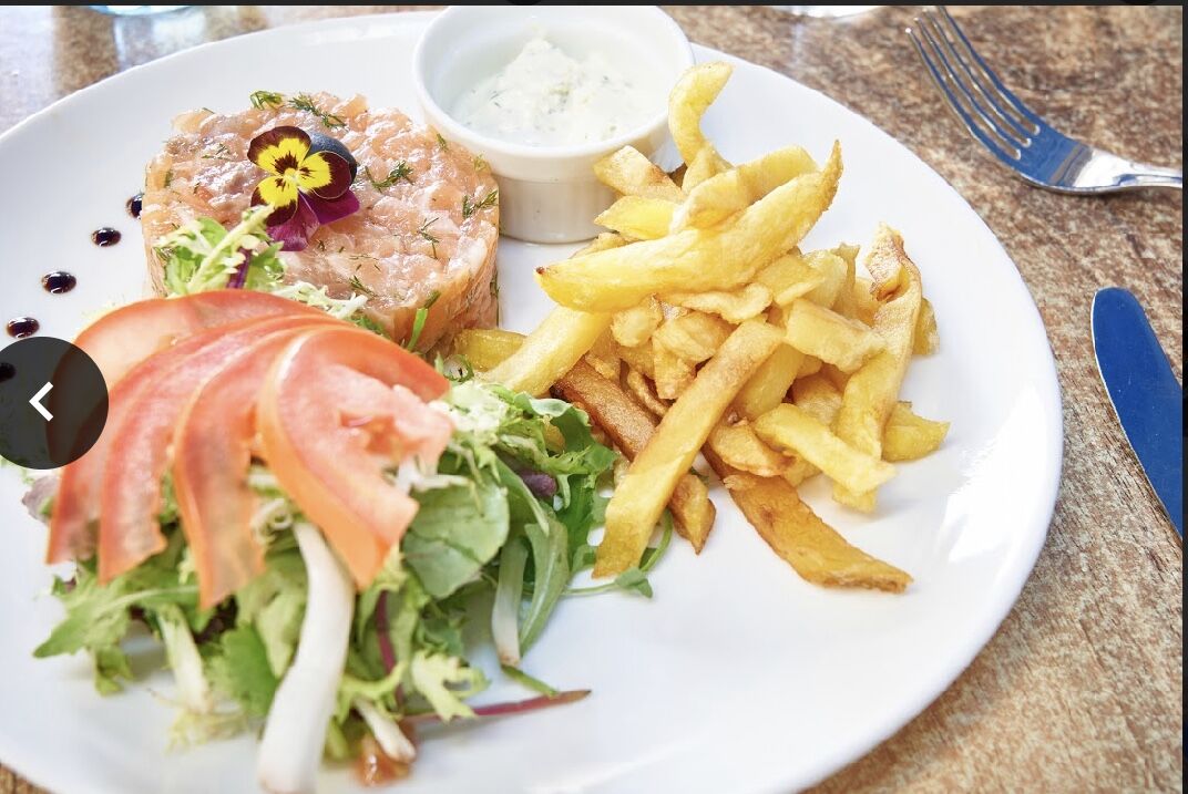 La carte propose une cuisine de poissons frais, selon l'arrivage, mais aussi des spécialités de moules autour de recettes typiques, de Fish and chips accompagné de ses frites maison, de Tapas ou encore de Paëlla.